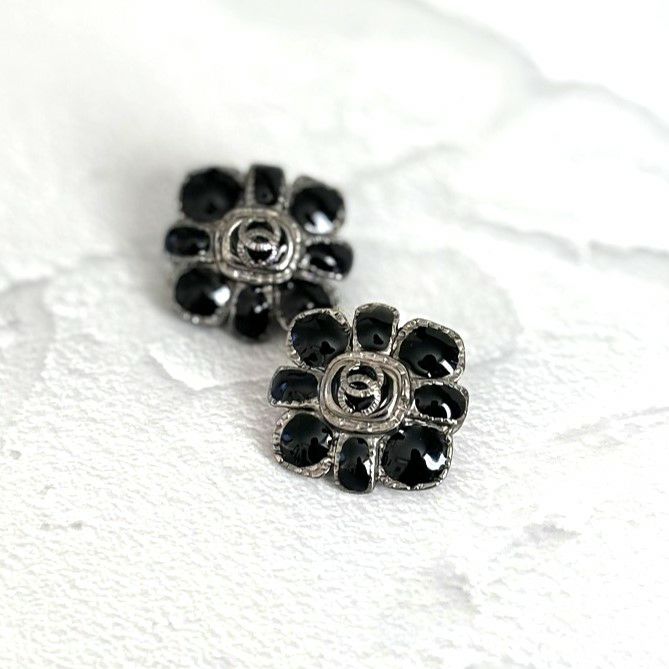 【送料無料】CHANEL シャネル ココマーク フラワー イヤリング シルバー ブラック カメリア【中古】