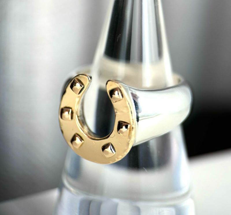 【送料無料】【磨き済】HERMES エルメス ホースシューリング 指輪 ヴィンテージ 金属素材 シルバー ゴールド 約9号(日本サイズ) アクセサリー表記52【中古】