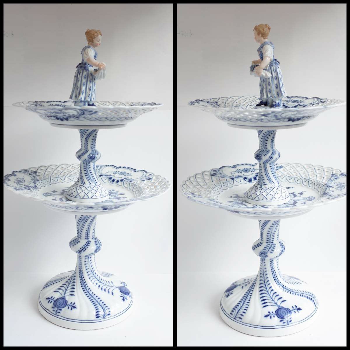 【MEISSEN】マイセン ブルーオニオン ケーキスタンド 少女