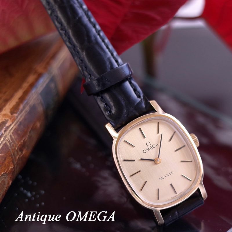 オメガ デビル 70’S アンティーク 18金張り SS ゴールド 長角 新品革ベルト レディース 手巻き 腕時計 OMEGA OH済1年保証
