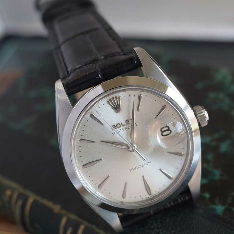立体的なカットが美しいくさびインデックス、ドルフィン針が魅力的なヴィンテージロレックスです。