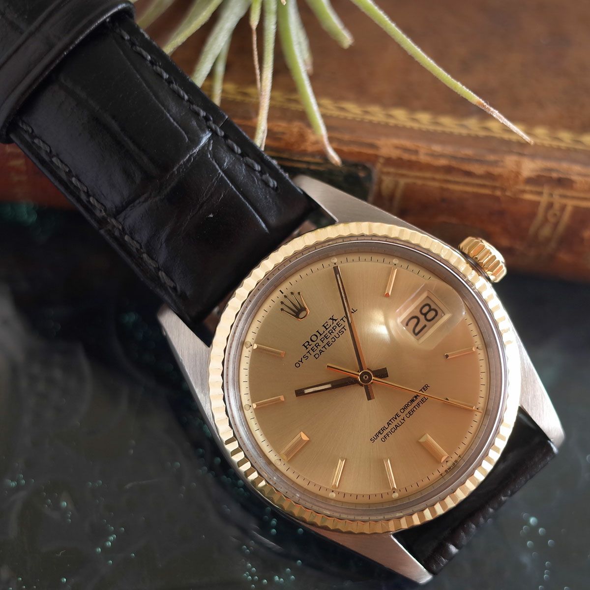 他の画像を見る ロレックス 1601 デイトジャスト ゴールドダイヤル YGベゼル コンビ 段付き クロノメータ 革 cal.1570 自動巻 ROLEX OH済1年保証 当店特別価格 ¥ 495,000 税込 在庫切れ 詳細を見る お気に入りに登録する