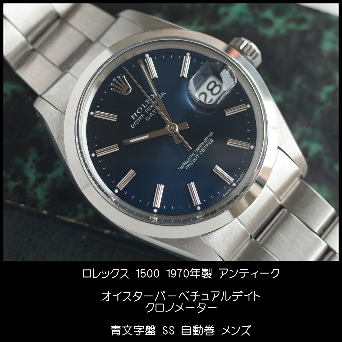 他の画像を見る ロレックス 1500 パーペチュアルデイト 1970年 美品 純正青文字盤 巻きブレス 箱 サービス保証書 自動巻 メンズ アンティーク ROLEX 1年保証 当店特別価格 ¥ 569,800 税込 在庫切れ 詳細を見る お気に入りに登録する