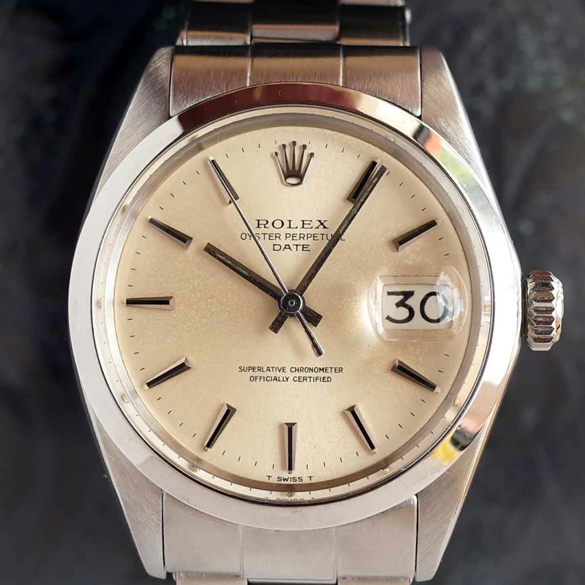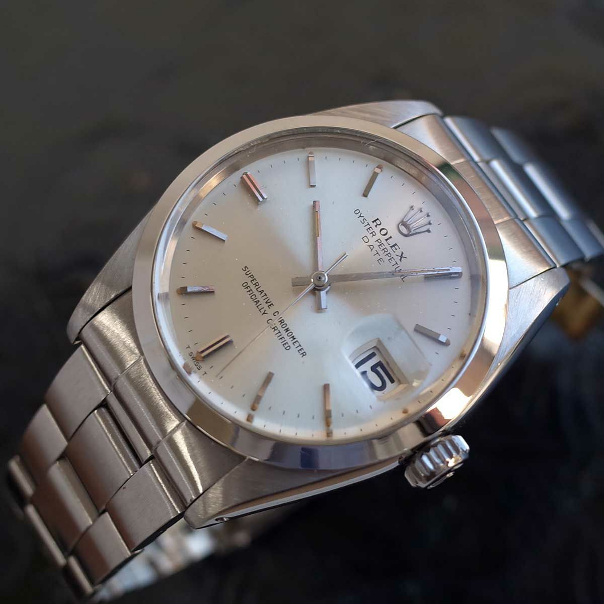 他の画像を見る ロレックス 1500 パーペチュアルデイト 1970年製 SS 巻き込みブレス CAL.1570 自動巻 箱/クロノメーター証明書 ROLEX OH済1年保証 当店特別価格 ¥ 498,300 税込 在庫切れ 詳細を見る お気に入りに登録する