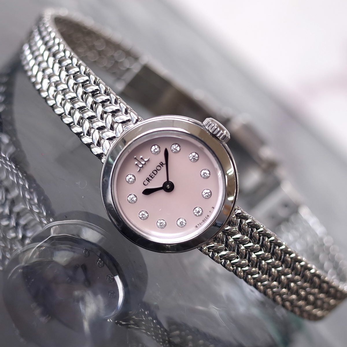 他の画像を見る クレドール GSTE923 1E70-0BP0 ミニミニ ピンクシェル ダイヤ 極細ブレス レディース クォーツ 腕時計 SEIKO CREDOR 1年保証 定26万 当店特別価格 ¥ 88,000 税込 カートに入れる お気に入りに登録する