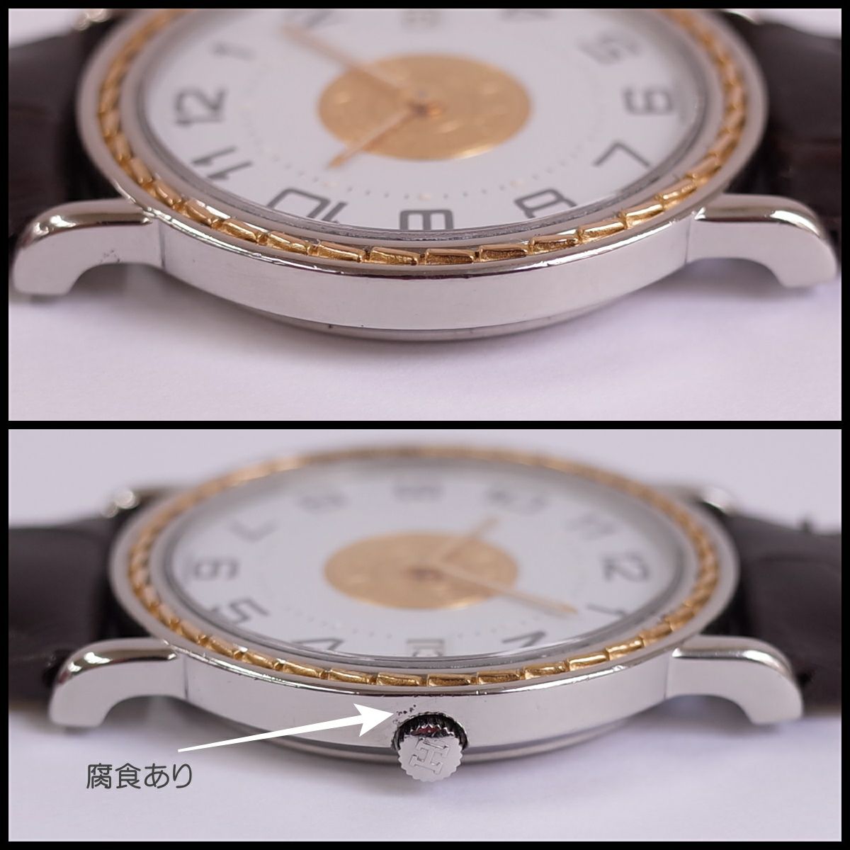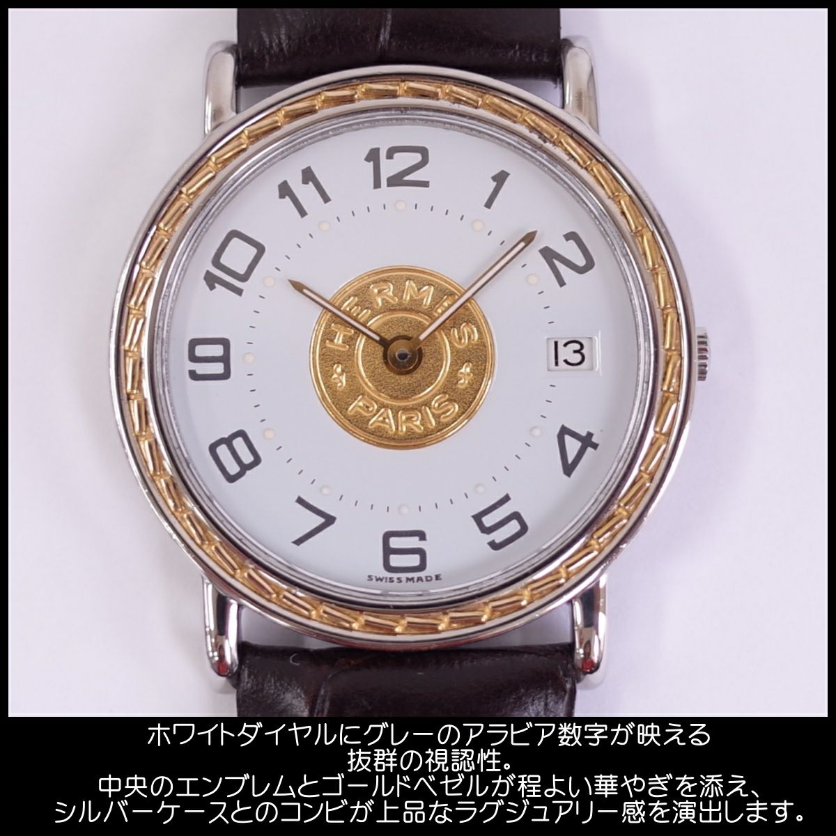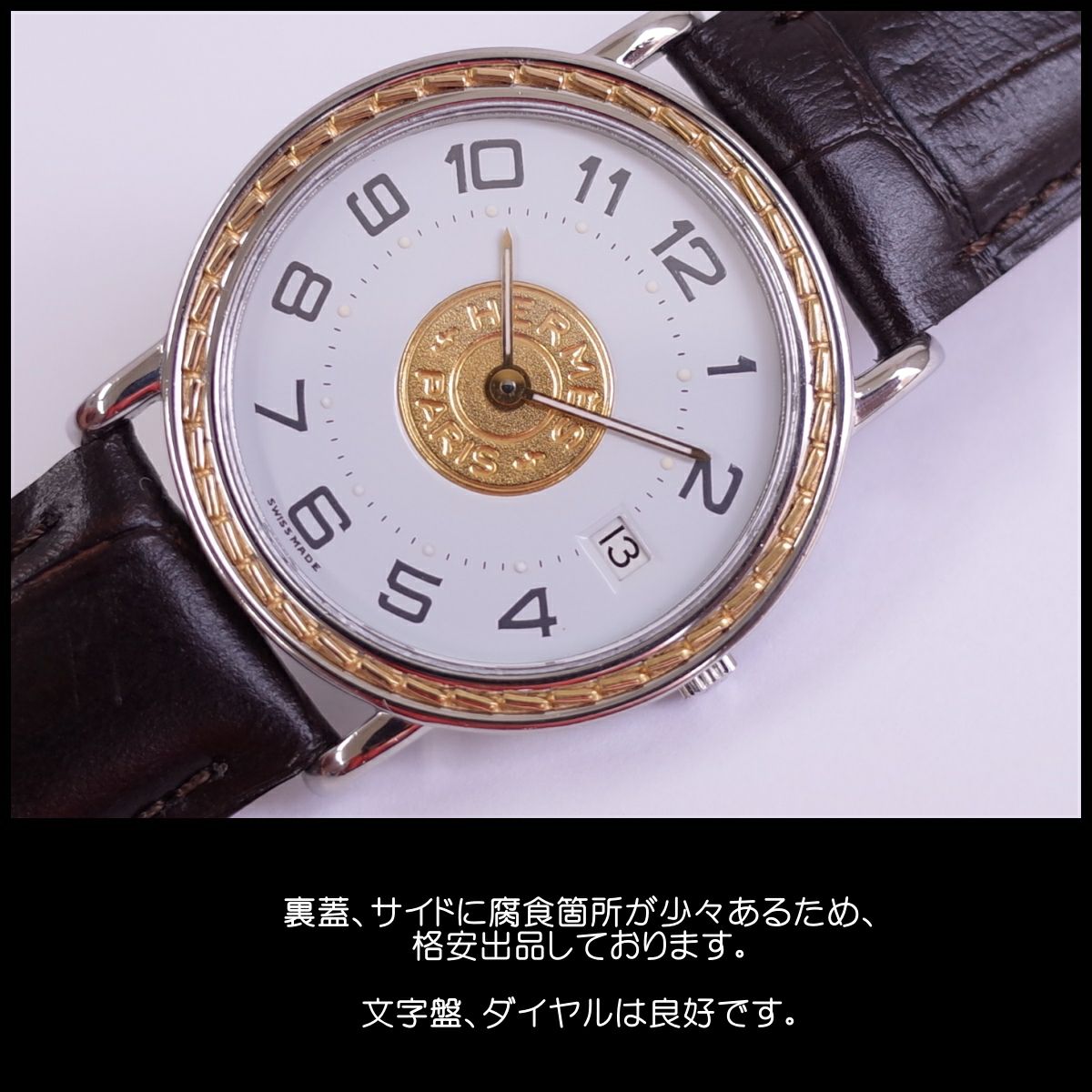 他の画像を見る 訳あり エルメス セリエ SS/K18 アラビア 32ミリ径 新品革ベルト ボーイズ メンズ クォーツ HERMES 1年保証 OH済 電池交換済 当店特別価格 ¥ 55,000 税込 カートに入れる お気に入りに登録する