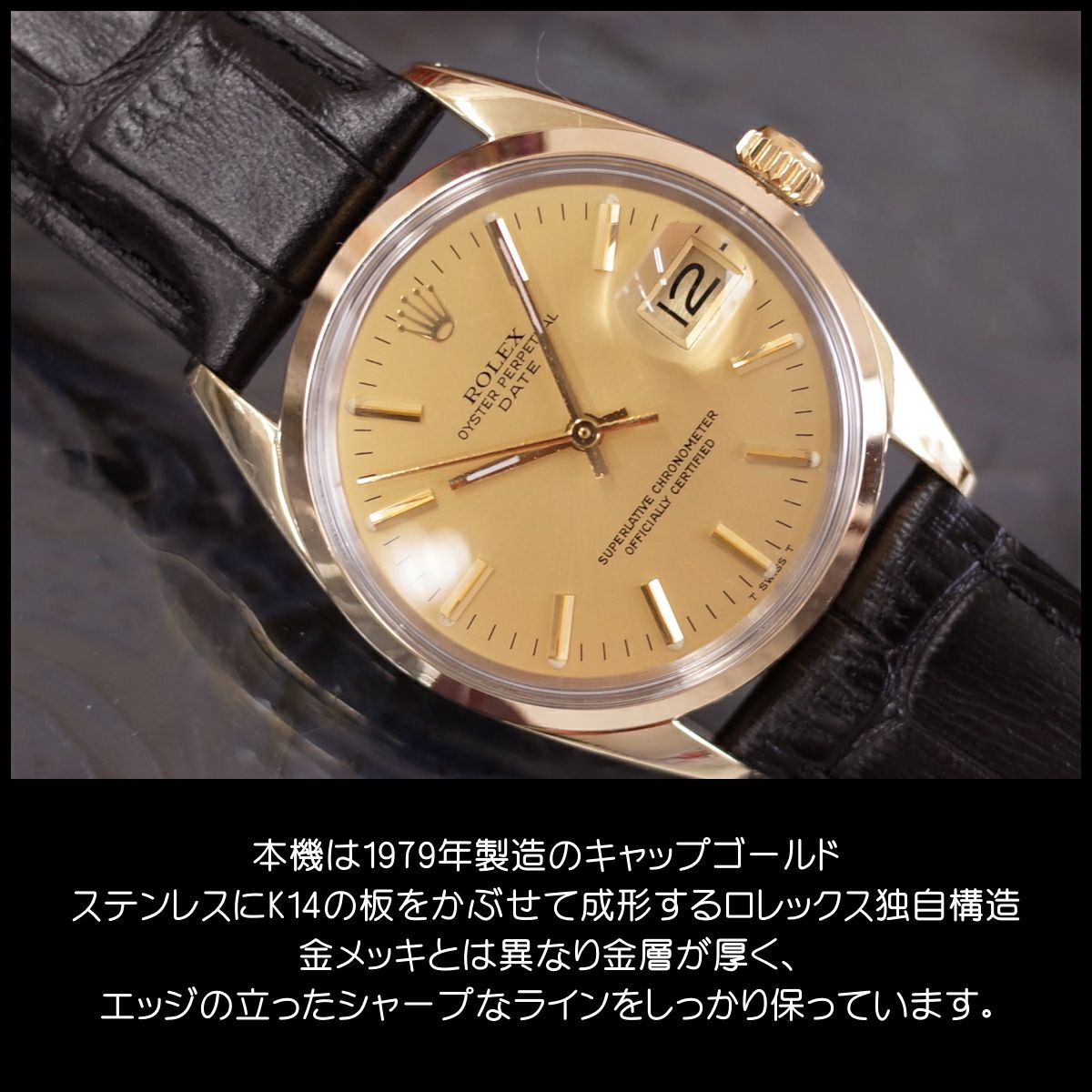 他の画像を見る ロレックス 1550 キャップゴールド K14YG オイスターパーペチュアルデイト 1979年 SS/K14 メンズ 新品革ベルト 腕時計 ROLEX アンティーク OH済1年保証 当店特別価格 ¥ 484,000 税込 カートに入れる お気に入りに登録する