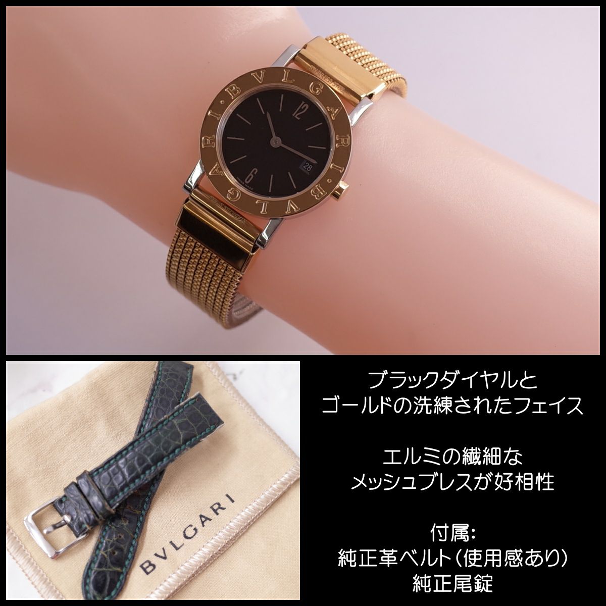 他の画像を見る 良品 BVLGARI ブルガリブルガリ BB26SGLD SS/K18 黒文字盤 エルミ伸縮ゴールドブレス レディース クォーツ 腕時計 BVLGARI メンテ済1年保証 当店特別価格 ¥ 89,100 税込 カートに入れる お気に入りに登録する