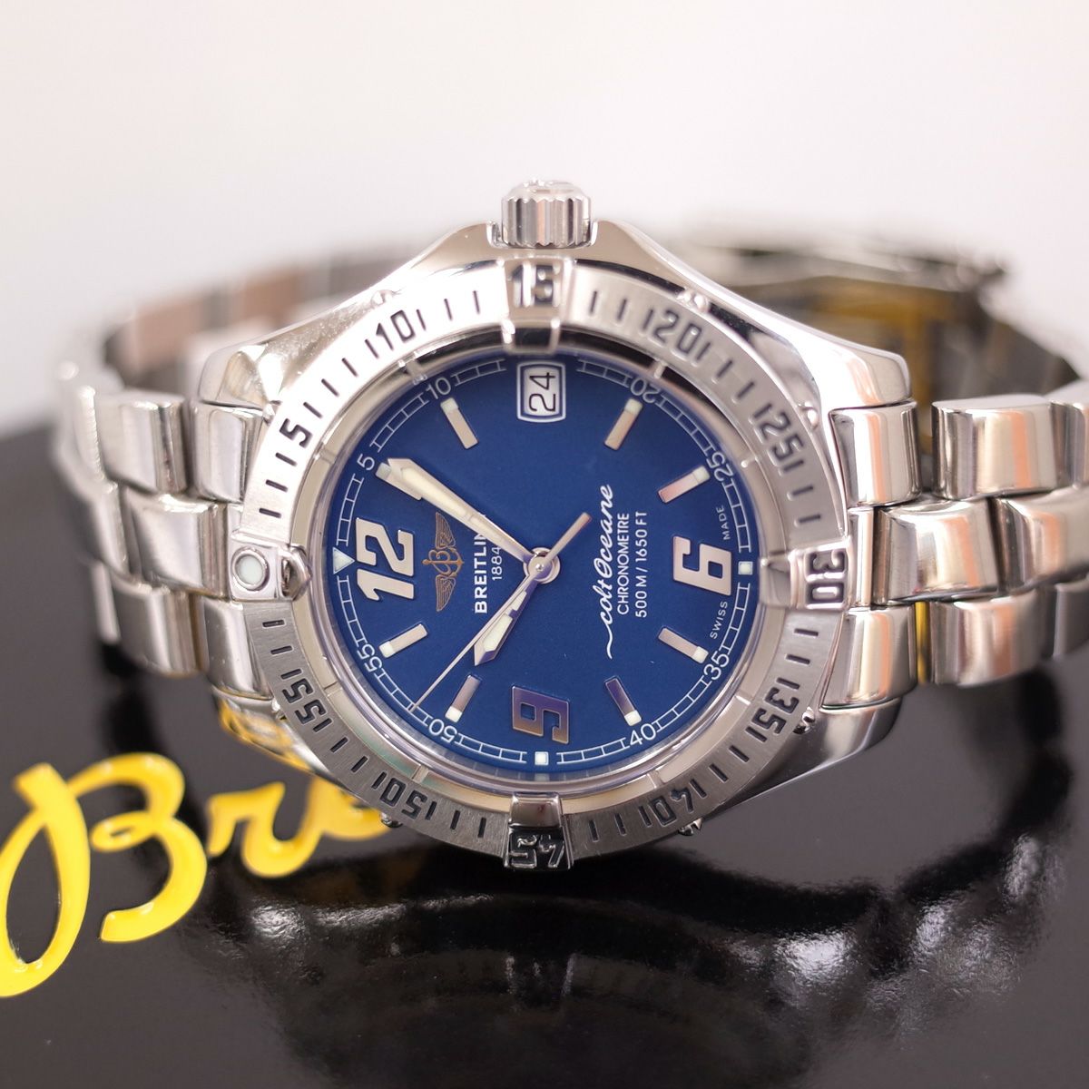他の画像を見る 箱保付 BREITLING ブライトリング A57350 コルトオーシャン クォーツ 青文字盤 2025.11電池交換 OH済み 33mm レディース 腕時計 1年保証【中古】 当店特別価格 ¥ 140,800 税込 カートに入れる お気に入りに登録する