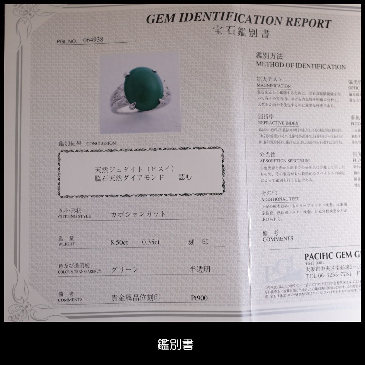 他の画像を見る 翡翠 ひすい 天然ジェダイト 8.5ct 指輪 リング PT900 ダイヤ 0.35ct 宝石鑑別書有 13号 カポションカット 当店特別価格 ¥ 247,500 税込 カートに入れる お気に入りに登録する