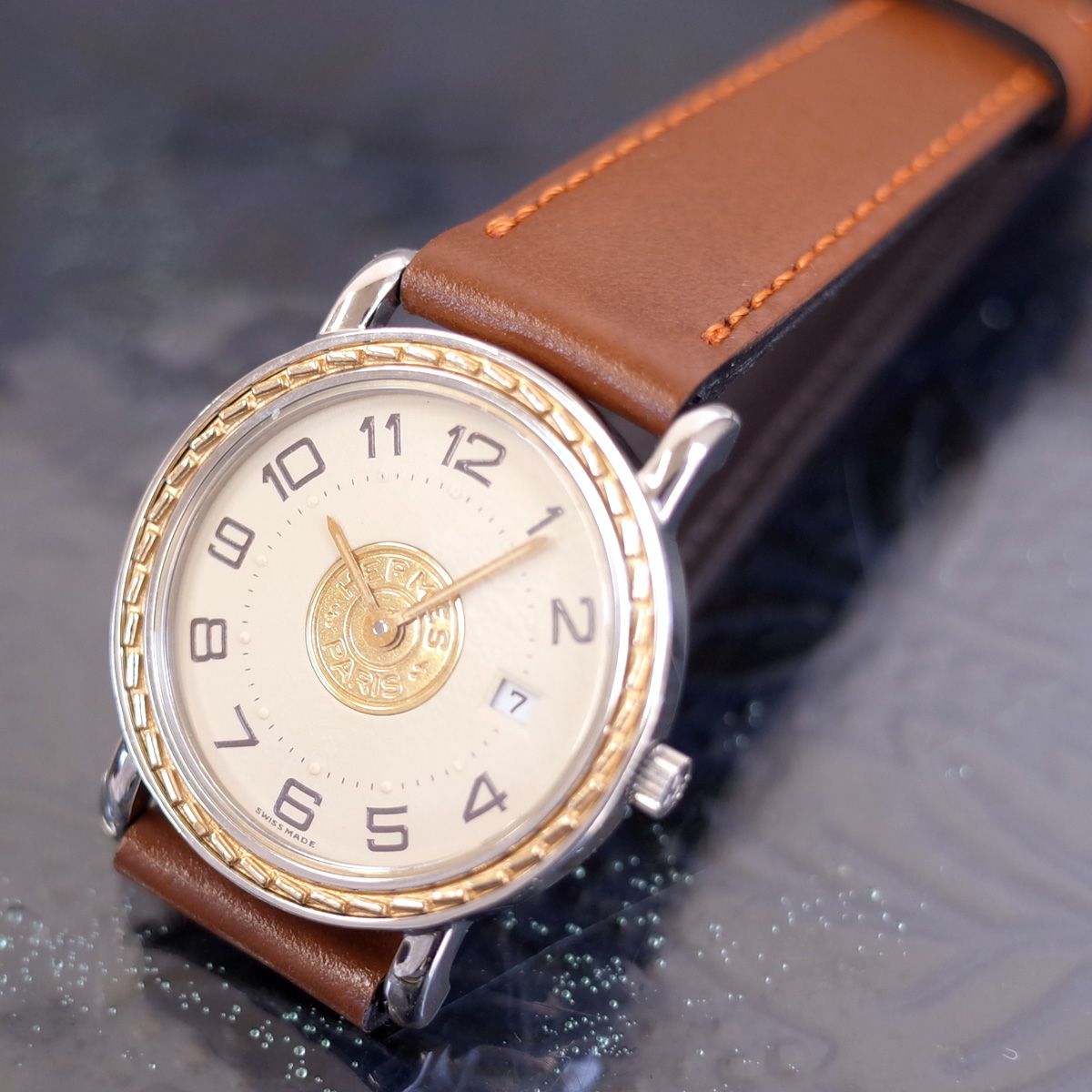 他の画像を見る 箱保有 エルメス セリエ SS/K18 YG750 純正尾錠 アラビアインデックス コンビ 新品革ベルト レディース クォーツ HERMES OH済1年保証 電池交換済 当店特別価格 ¥ 71,500 税込 カートに入れる お気に入りに登録する