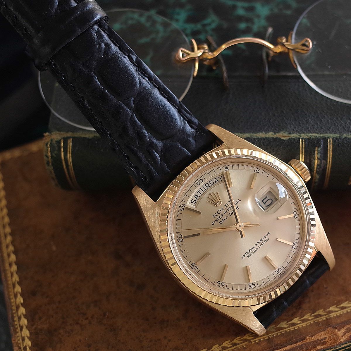 ベゼルの陰影が放つ18金YGの輝きとアンティークロレックスの趣に魅了される逸品です。