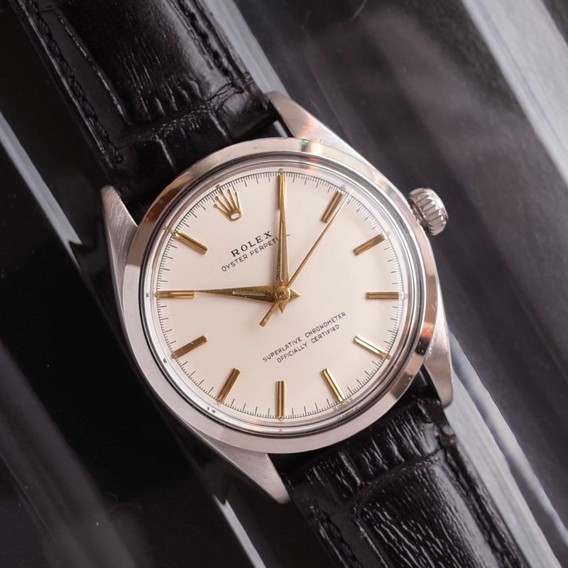 アイボリー系のダイヤルにゴールドのドルフィンハンド、
