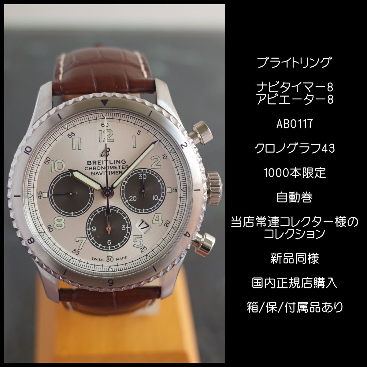 他の画像を見る 新品同様 ブライトリング ナビタイマー8 アビエーター8 AB0117 AB01171A1G1P1 国内正規 箱/保 1000本限定 BREITLING 1年保証 当店特別価格 ¥ 495,000 税込 在庫切れ 詳細を見る お気に入りに登録する
