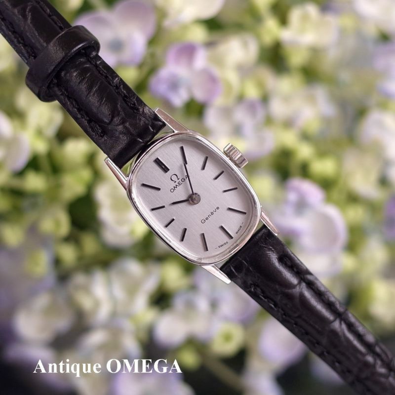 極小 オメガ ジュネーブ 70's アンティーク SS/GF グレー 新品革ベルト レディース 手巻 腕時計 OMEGA OH済1年保証
