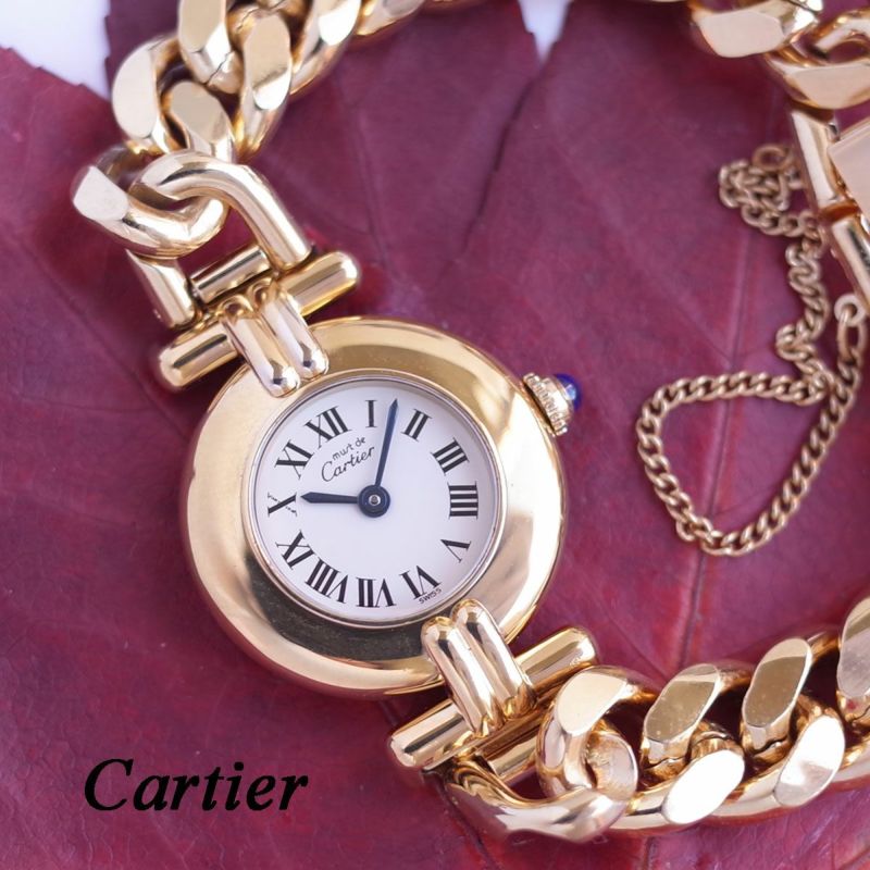カルティエ マストコリゼ 590002 ヴェルメイユ ゴールド アイボリーローマン 喜平ブレス レディース クォーツ 腕時計 CARTIER OH済1年保証