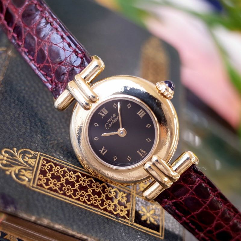 カルティエ マストコリゼ W590002 ブラック ローマン ヴェルメイユ 純正革&尾錠 レディース QZ 腕時計 CARTIER OH済1年保証