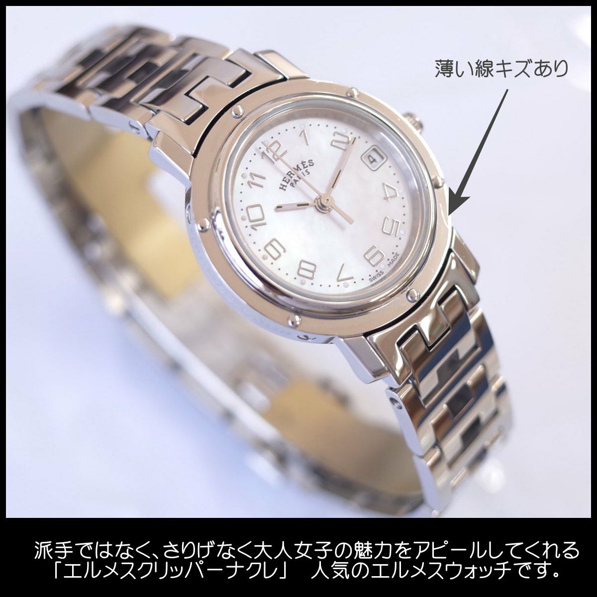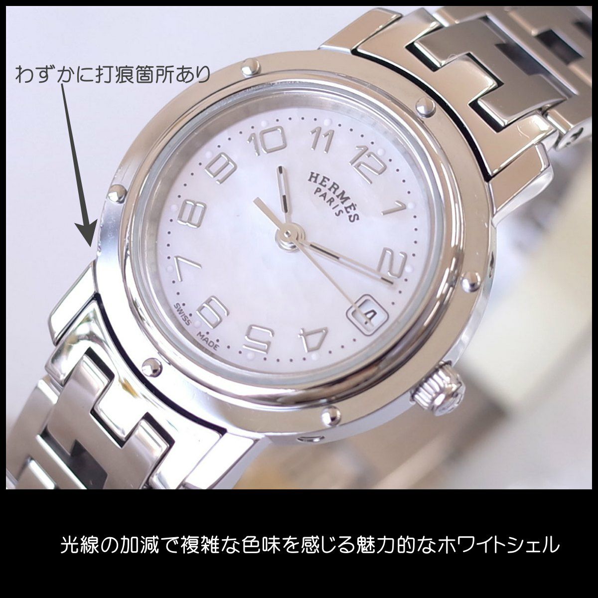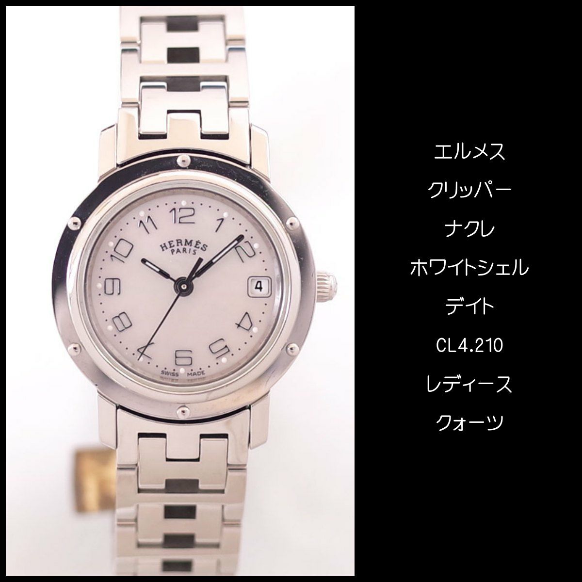 他の画像を見る エルメス クリッパーナクレ ホワイトシェル 白蝶貝 アラビア文字 デイト Hロゴブレス レディース クォーツ HERMES 1年保証 電池交換済 当店特別価格 ¥ 102,300 税込 在庫切れ 詳細を見る お気に入りに登録する