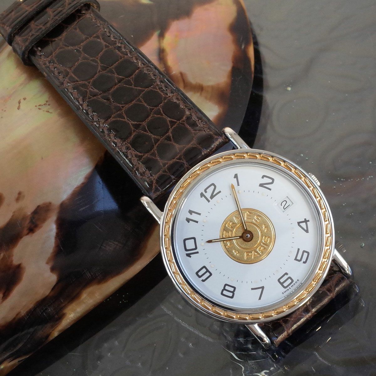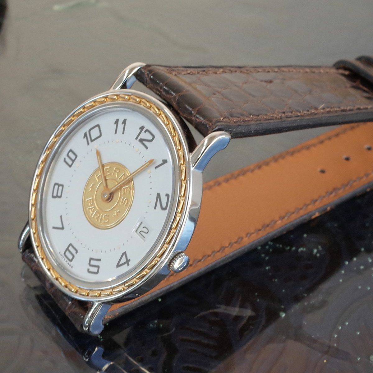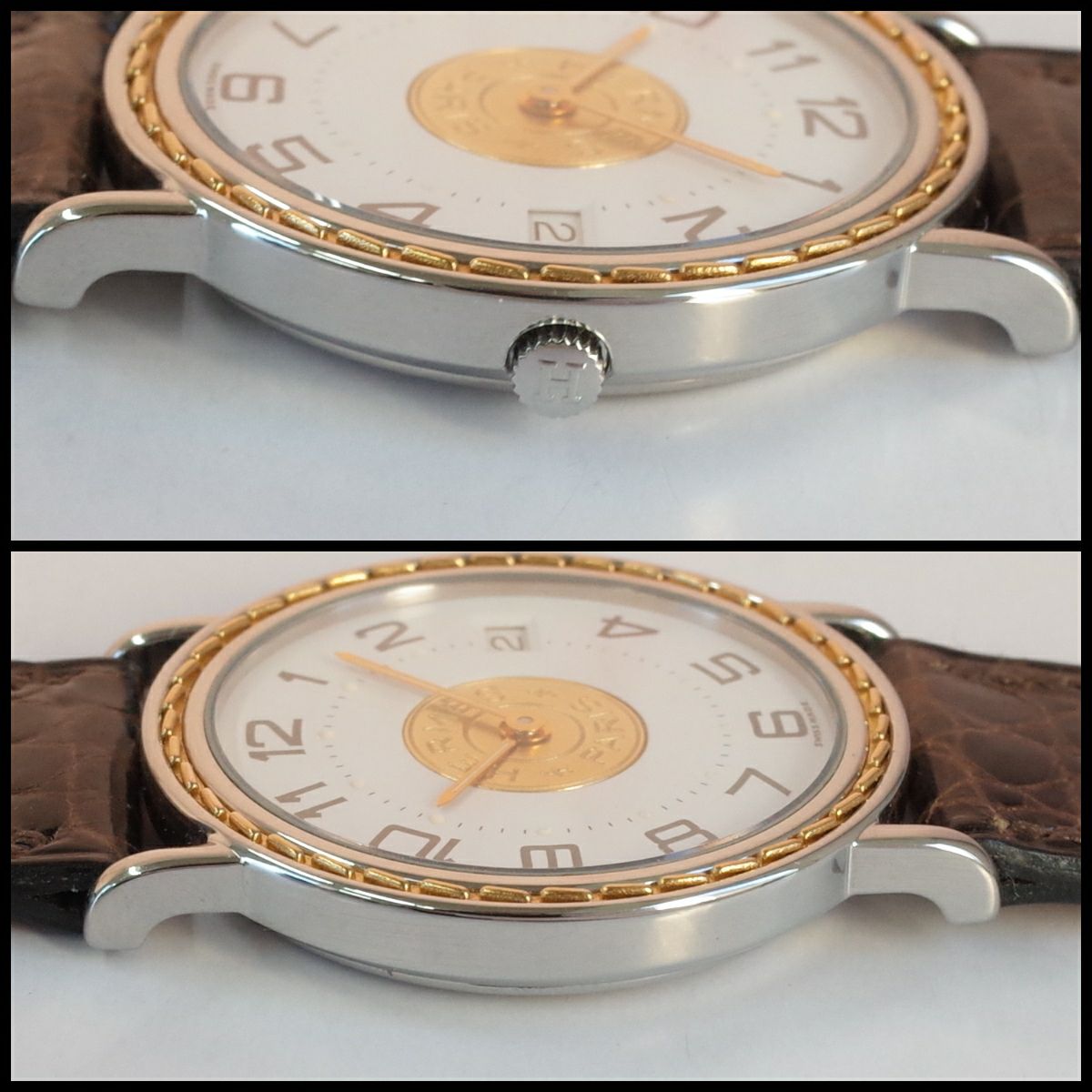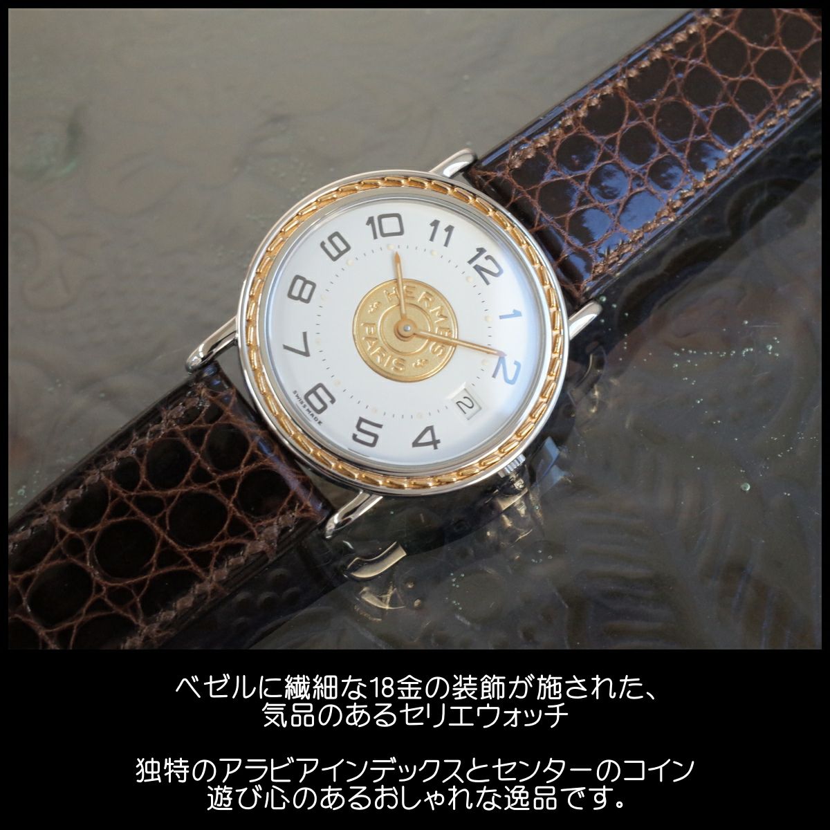 他の画像を見る 美品 エルメス セリエ SS アラビア デイト 純正中古ベルト 32ミリ径 純正尾錠 ボーイズ メンズ クォーツ HERMES 1年保証 メンテ済 電池交換済 当店特別価格 ¥ 59,400 税込 在庫切れ 詳細を見る お気に入りに登録する