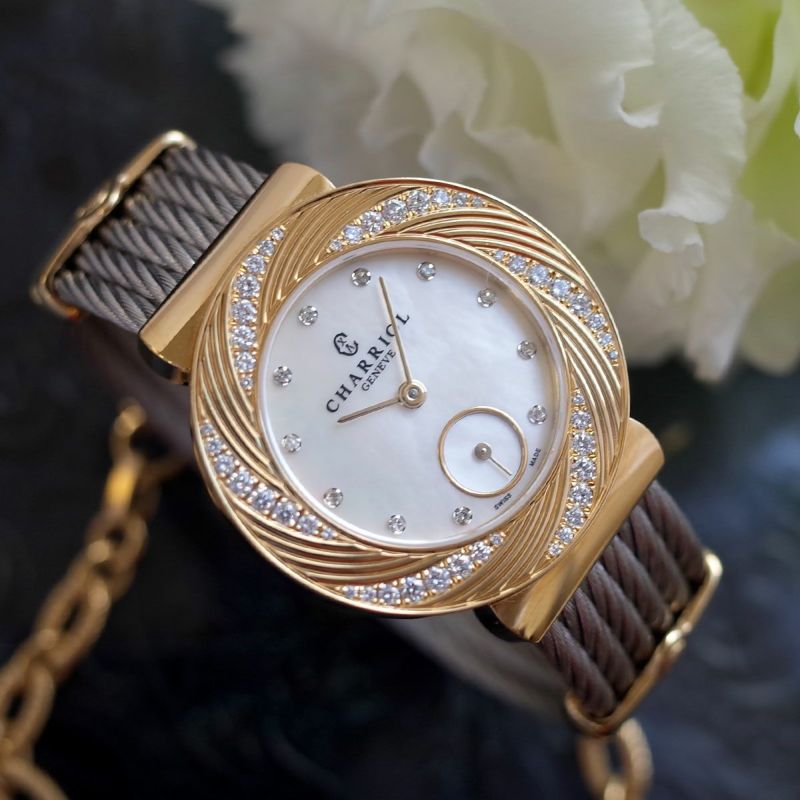 美品 CHARRIOL シャリオール サントロペ シェルダイヤ ST30.2 SS/GP 保証書有 ジュエリーウォッチ バングル 1年保証