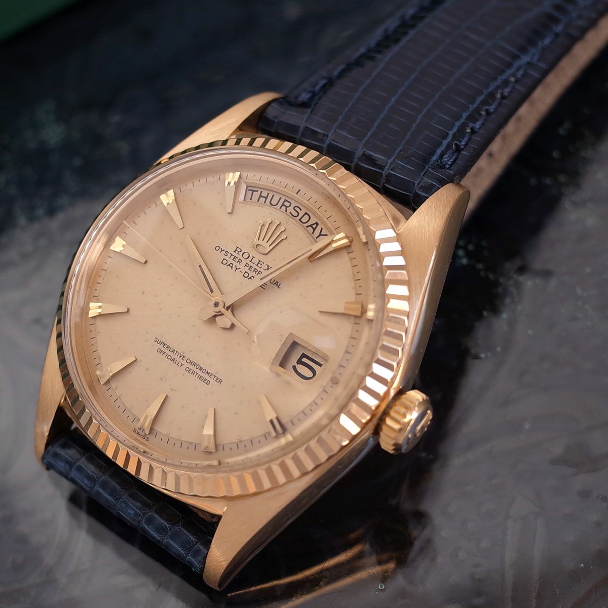 他の画像を見る ロレックス 1803 オイスターパーペチュアル デイデイト 1963年 K18YG クサビゴールド ドルフィン針 段落ち アンティーク ROLEX OH済1年保証 当店特別価格 ¥ 1,485,000 税込 在庫切れ 詳細を見る お気に入りに登録する