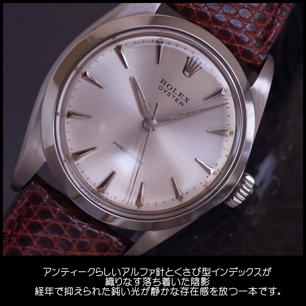 他の画像を見る ロレックス 6426 オイスタープレシジョン 1967年 SS くさび アルファ針 純正尾錠 メンズ 手巻き 腕時計 ROLEX アンティーク OH済1年保証 当店特別価格 ¥ 324,500 税込 在庫切れ 詳細を見る お気に入りに登録する